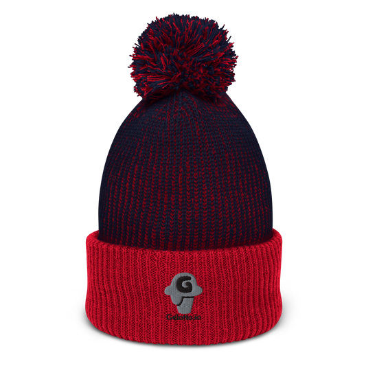 Gelotto logo Oversized Pom-Pom Beanie (grey and black logo)