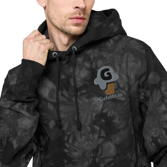 Gelotto logo Unisex Champion tie-dye hoodie (grey and black logo)